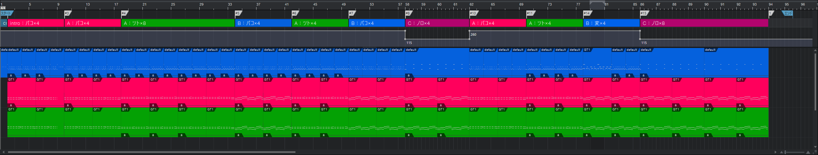 intro → main → キメ → A → B → main×1/2 → A → B → main×2 → outro